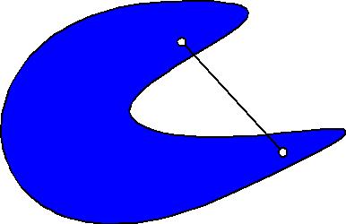 Na slikah spodaj so liki, katere omejujejo sklenjene krivulje. Le te same sebe ne sekajo. Kako bi lahko opisal glavno razliko med prvima dvema in drugima dvema likoma? Opazuj narisani daljici na prvih dveh slikah (katerih podnapis je "nekonveksen lik"). Obe daljici imata krajišči v notranjosti lika, vendar je del daljice v zunanjosti lika.