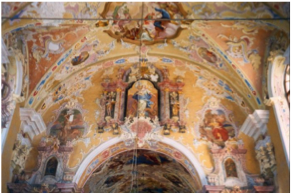 Notranjost cerkve po prezentaciji. © 1994, Milan Sagadin, vir: ZVKDS Kranj.