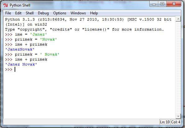 Na primerih vidimo, da se nam niz vedno izpiše v enojnem narekovaju.