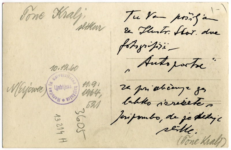 Na zadnji strani fotografije slike iz leta 1932 z naslovom Jaz in moja žena je Tone Kralj zapisal: Tu Vam pošiljam za Ilustr. Slov. dve fotografiji »Avtoportret«. Za priobčevanje ga lahko izrežete s pripombo, da je detajl slike.
