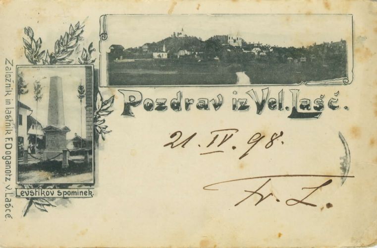 Levstikov spominek, Pozdrav iz Velikih Lašč, dopisnica odposlana 21.4.1898