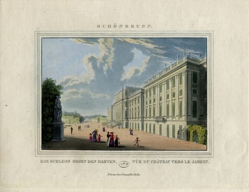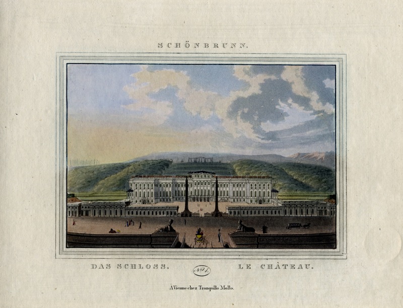 Joseph in Eduard Gurk: Wien's Umgebungen: Schönbrunn-Das Schloss (album Dunaj in okolica: grad Schönbrunn), barvna litografija, 1827