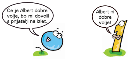 Kaj pa v primeru, ko Jaka ne izdela uspešno razreda, pa vendarle lahko odide na taborjenje? Tudi to možnost imamo za pravilno!