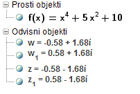 V galeriji sta še sliki z izpisom in izrisom kompleksnih ničel na grafu.