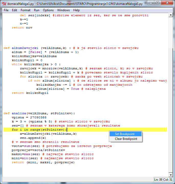 - napakah pri načrtovanju programske kode,