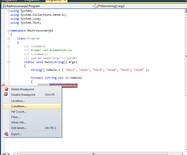 - pri napakah pri kodi programa,
