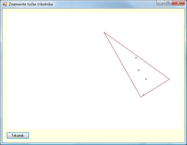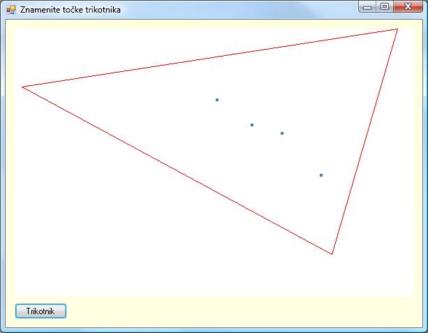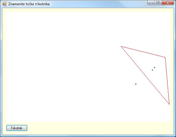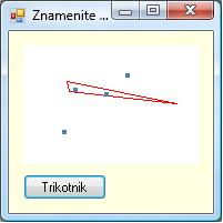 Tu je največji problem spreminjanje velikosti okna. Če uporabnik okno lepo sorazmerno povečuje se točke izračunajo kar iz relativnih koordinat. Problem nastane če uporabnik okno raztegne le v eni smeri. V tem primeru se trikotnik močno deformira in znamenite točke je potrebno ponovno izračunati. Sicer lahko uporabnik dobi napačno predstavo o njih.