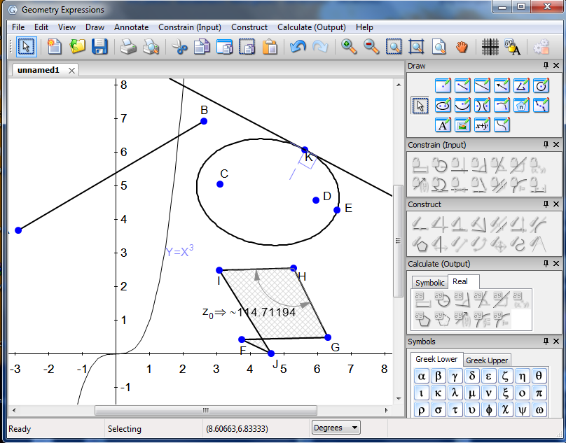 Ob izbiri dveh že obstoječih objektov (daljica, premica, vektor, poligon) program končni