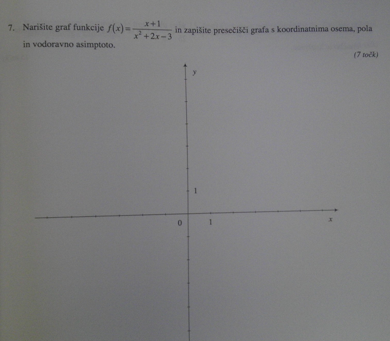 Narišite graf funkcije in zapišite presečišči grafa s koordinatnima osema, pola in vodoravno asimptoto.