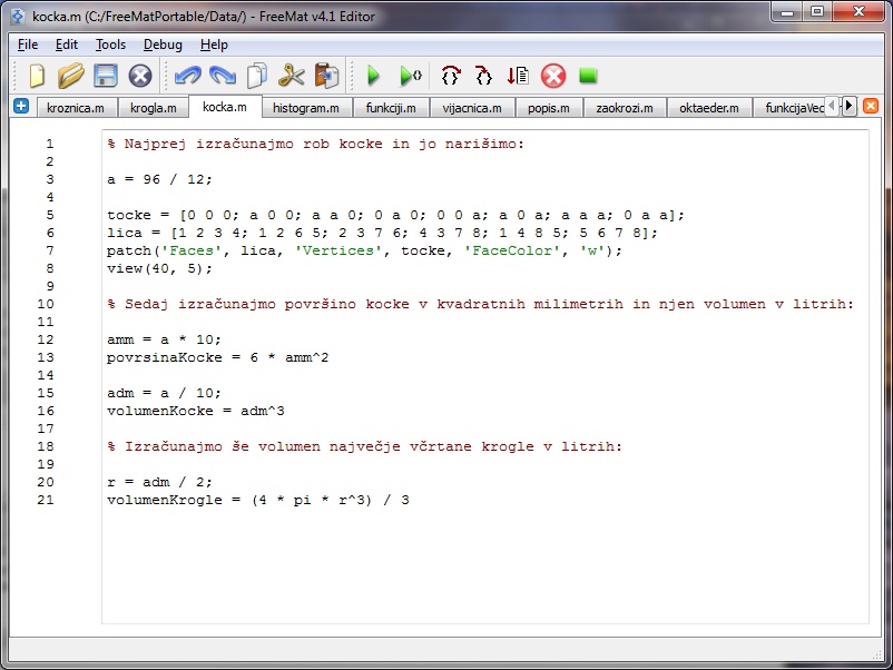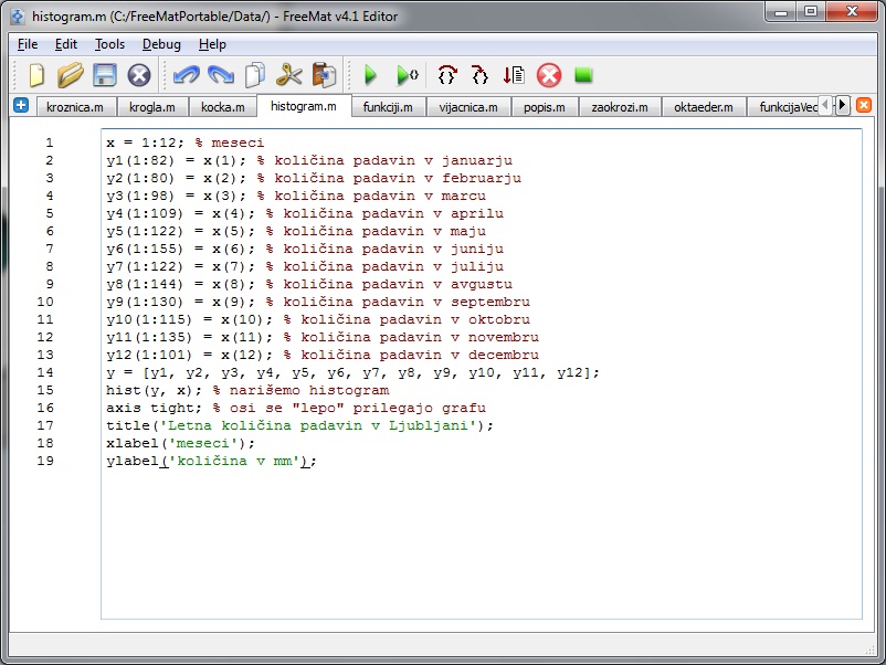 - Še enkrat uporabimo polyval: a = polyval(i, min(x))